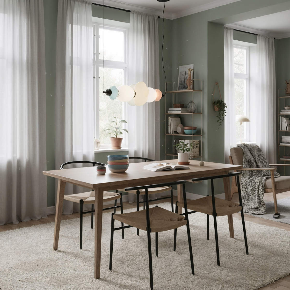 Living room, bedroom, study, dining room, hall, kitchen, children's room