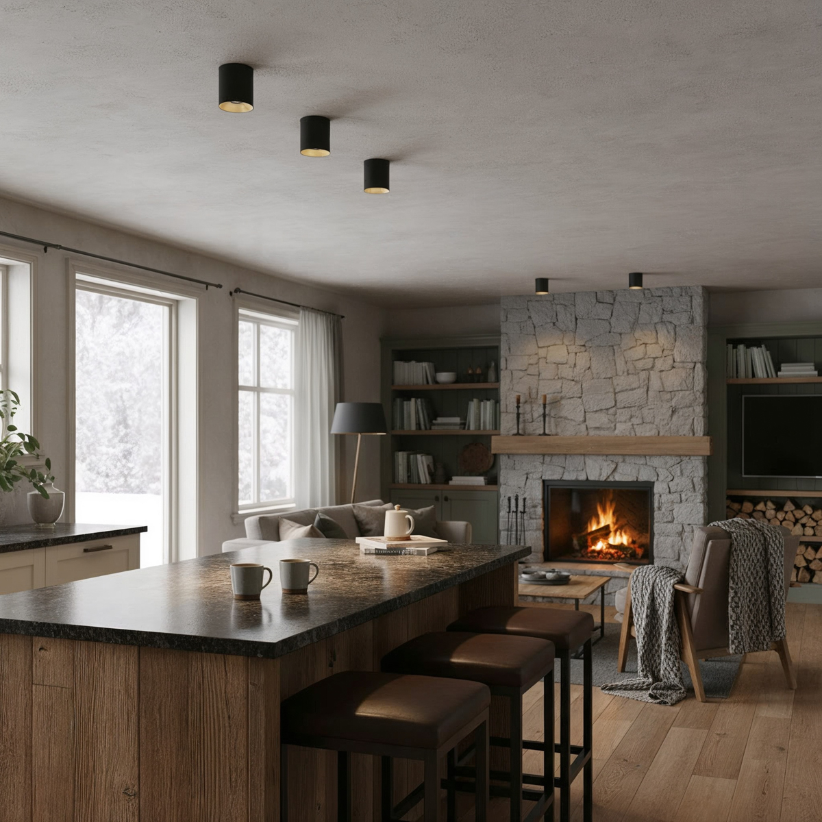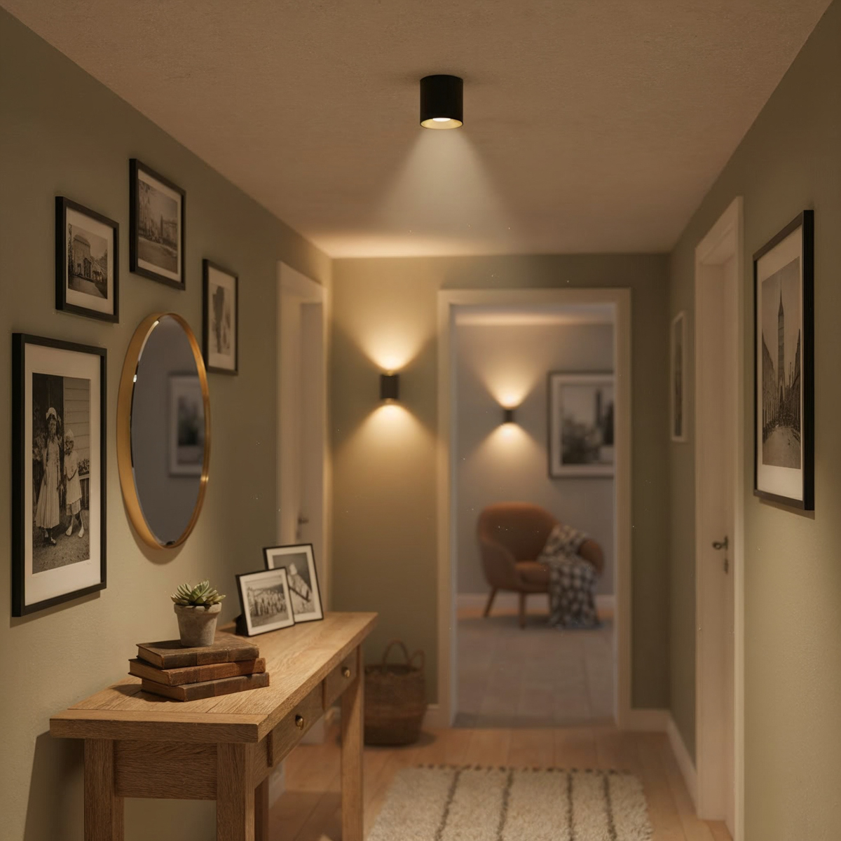 living room, bedroom, office, hall