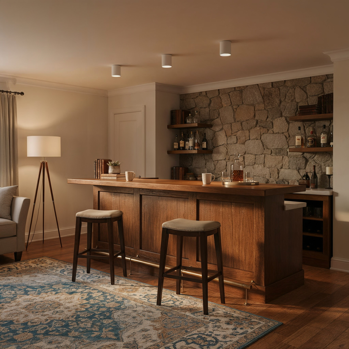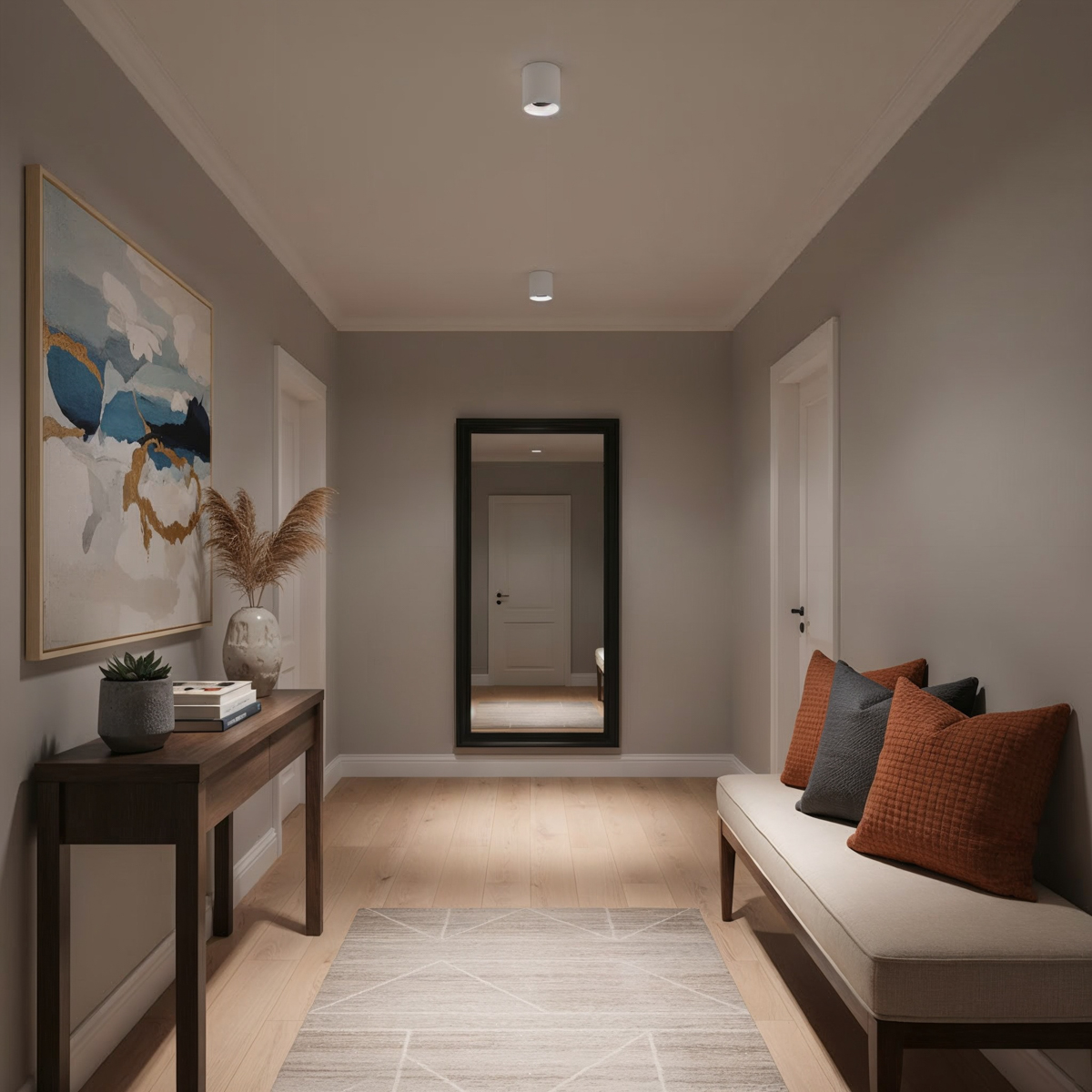 living room, bedroom, office, hall